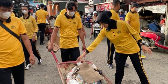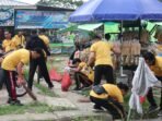 NUNUKAN – Personel Kepolisian Resor (Polres) Nunukan turun langsung membersihkan kawasan Pasar Inhutani dalam aksi