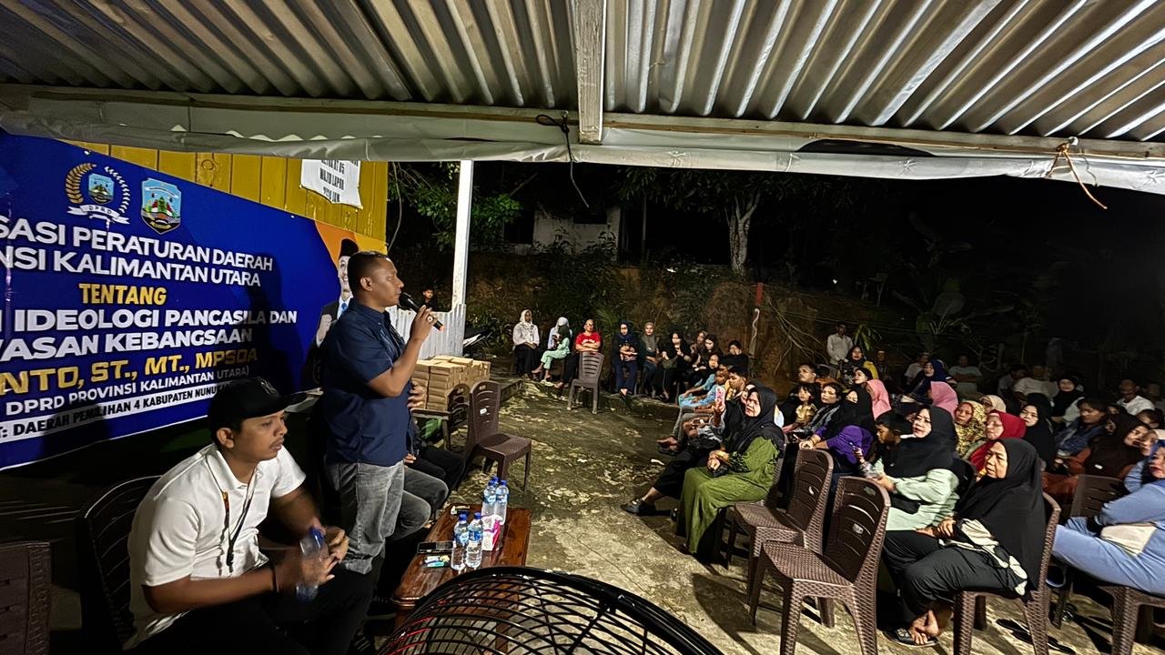 NUNUKAN – Anggota DPRD Provinsi Kalimantan Utara (Kaltara) dari Daerah Pemilihan (Dapil) IV Nunukan, Rismanto, menggelar kegiatan Sosialisasi Peraturan Daerah (Sosper) di RT 05 Jalan Pasar Baru, Kelurahan Nunukan Timur, Kamis (04/12/2025), malam.