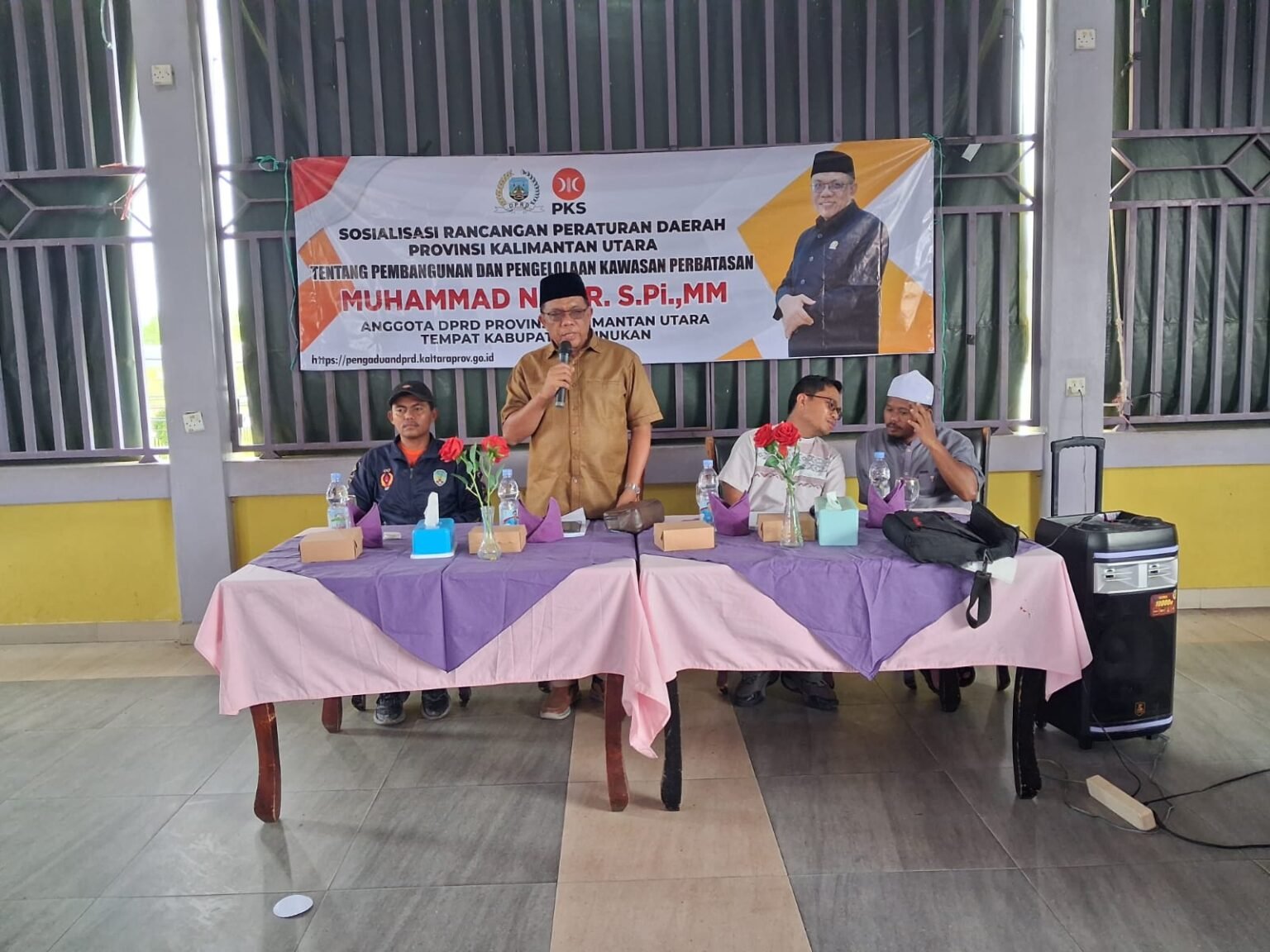SEBATIK — Komitmen DPRD Provinsi Kalimantan Utara untuk mendorong percepatan pembangunan kawasan perbatasan kembali ditegaskan melalui kegiatan sosialisasi Rancangan Peraturan Daerah (Ranperda) Pembangunan dan Pengelolaan Kawasan Perbatasan yang digelar oleh Anggota DPRD Kaltara, Muhammad Nasir, di Kecamatan Sebatik Utara, Rabu (3/12/2025).