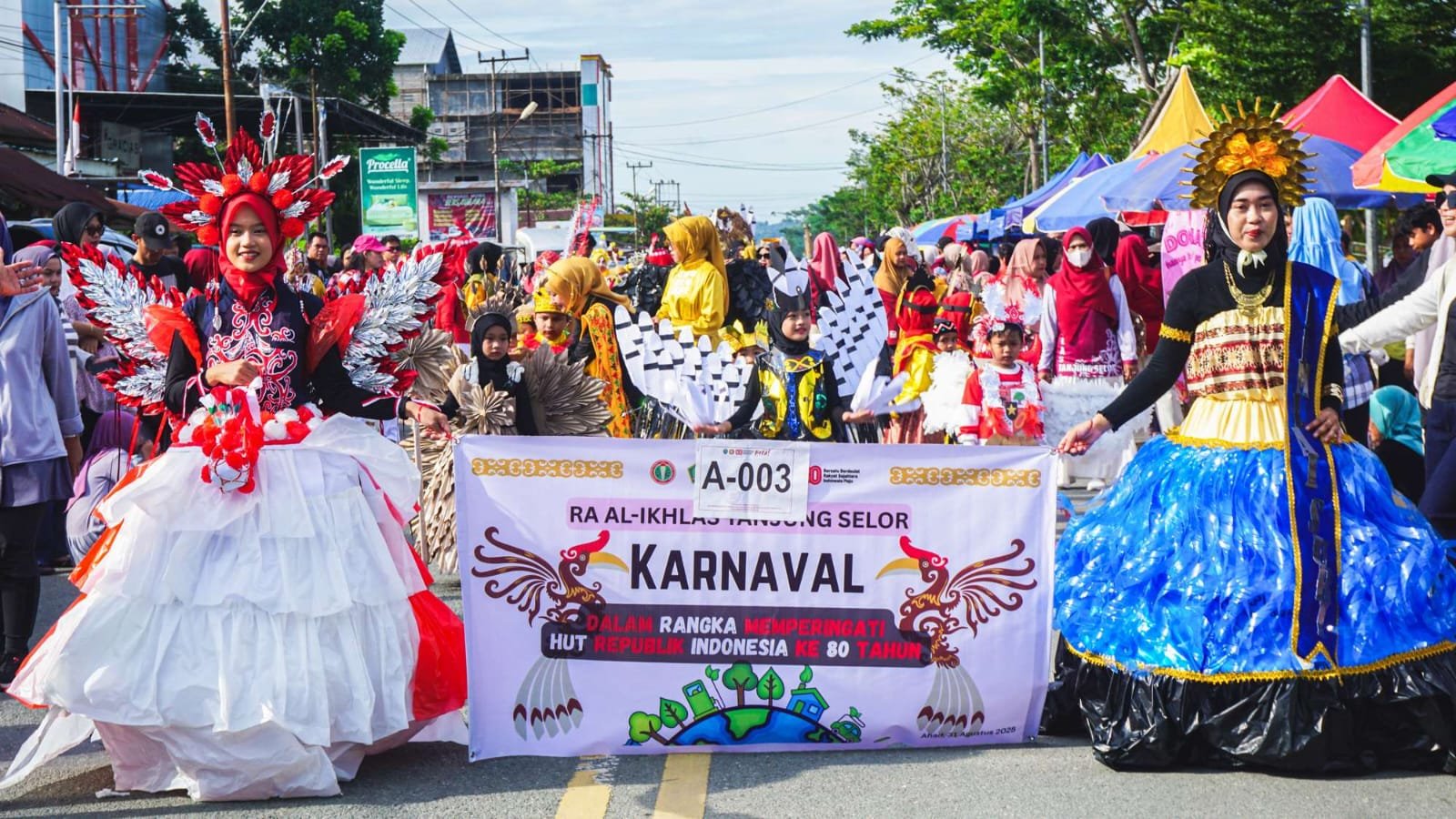 TANJUNG SELOR – Suasana semarak terlihat di kawasan Tebu Kayan, Tanjung Selor, saat ratusan peserta mengikuti Karnaval Kreasi Daerah Bulungan. Kegiatan ini diselenggarakan oleh PGRI Bulungan dalam rangka memeriahkan Hari Ulang Tahun ke-80 Republik Indonesia.