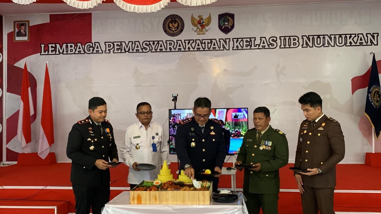 NUNUKAN – Lembaga Pemasyarakatan (Lapas) Kelas IIB Nunukan menyemarakkan peringatan Hari Bakti Pemasyarakatan (HBP) ke-62 dengan menggelar acara Tasyakuran di Aula Lapas Nunukan, Senin (27/04/2026). Kegiatan yang terhubung secara virtual melalui Zoom Meeting dengan Direktorat Jenderal Pemasyarakatan ini mengusung tema “Pemasyarakatan Kerja Nyata, Pelayanan Prima”.