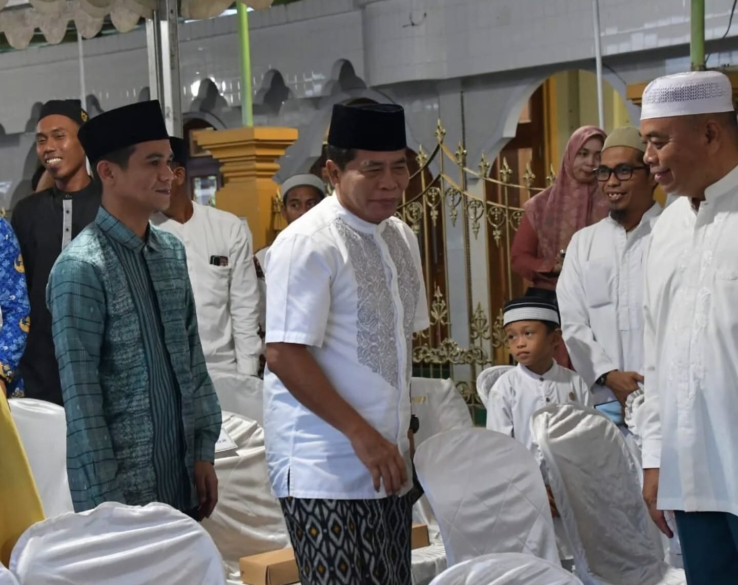 Selain menyampaikan pesan damai, Gubernur Zainal juga menyerahkan beragam bantuan sebagai bentuk perhatian nyata pemerintah. Ia membagikan sarung, Al-Qur’an, dan baju muslim untuk kebutuhan operasional Masjid Al-Muttaqin.