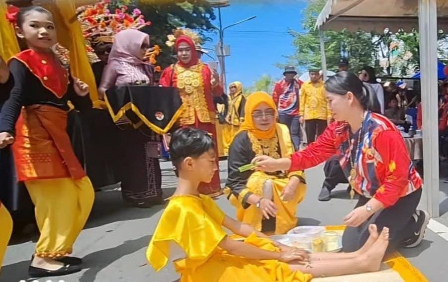NUNUKAN – Pawai budaya dalam rangka memperingati Hari Ulang Tahun (HUT) Kabupaten Nunukan ke-26 tahun 2025 dimeriahkan dengan penampilan memukau dari SDN 01 Nunukan. Sekolah ini menampilkan tradisi Bapupur Tidung, sebuah ritual adat yang kaya makna, di hadapan para pejabat, tamu, dan undangan yang hadir.